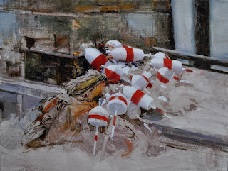 This is a direct Alla Prima method of painting, where one is going for the finish with every stroke. It is not necessarily a stage by stage, or layering in and repainting. I like using this method sometimes, and usually can finish a small one in a long sitting. Even larger paintings can be approached this way....finishing portions of a large composition as if they were small paintings.....each finished as one sitting on subsequent days. One must of course be aware to the whole when working this way. One must also have reasonable observation skills.....it is very easy for the drawing and shapes to go astray if attention is not paid to that issue. This is not a hyper realistic painting, so reasonable accuracy is what I'm going for. I must say that this is only one approach that I use. It is not necessarily the best or easiest. All approaches are valid.....it depends on ones mood at the time. In the end, one can not detect method....it's more about enjoying the process and keeping yourself entertained. Hope you enjoyed the progression demo. Thanks for listening to my ramblings.